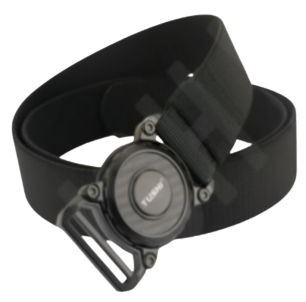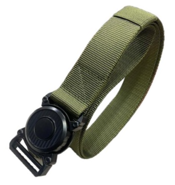 Cinturón en Nylon en colores negro y verde con chapa circular.