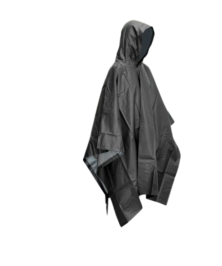 Poncho táctico de 2 metros (negro o verde) Cobertura amplia que protege tu cuerpo y tu equipo bajo lluvia intensa. Ligero, resistente y fácil de transportar.